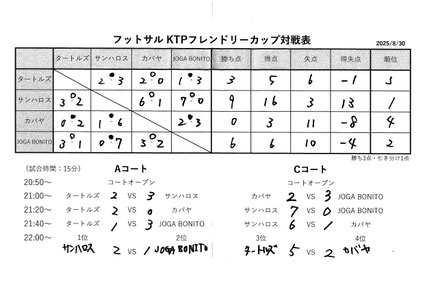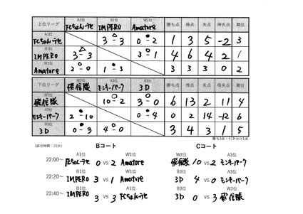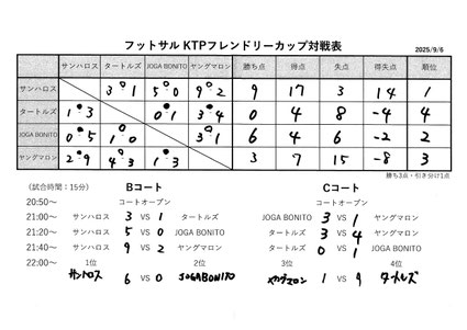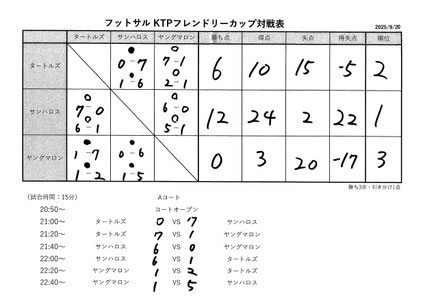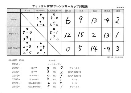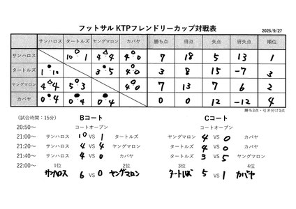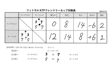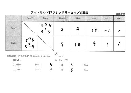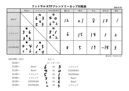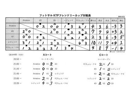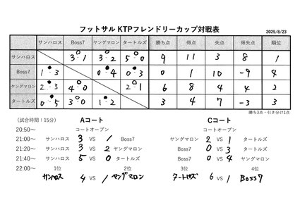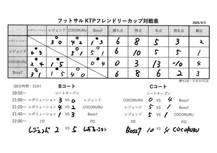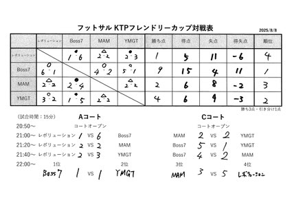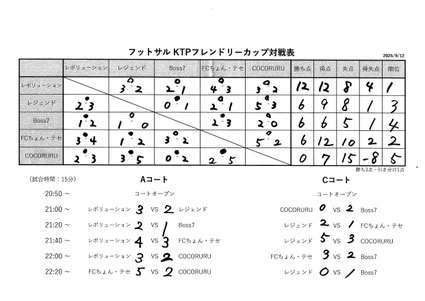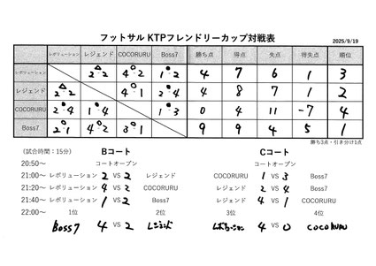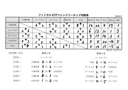 フレンドリーカップ順位決定戦は木曜開催となりました。