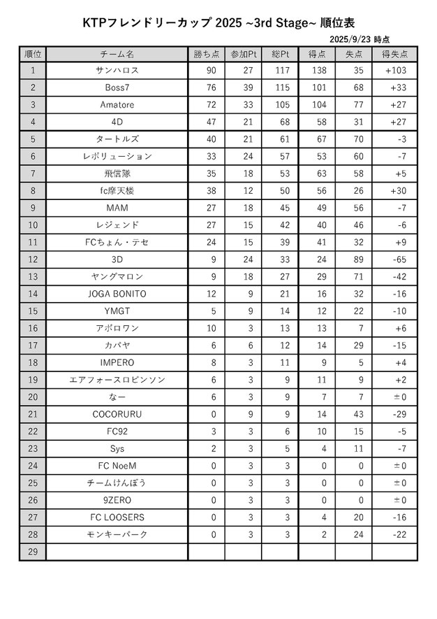 フレンドリーカップ3rdステージはまだ始まったばかり。全チームに順位決定戦のチャンスがあります!どんどん参加して上位入賞を目指しましょう。