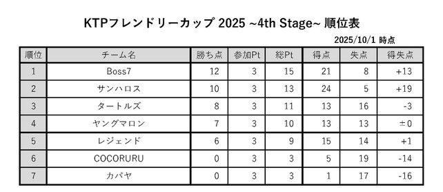 獲得勝ち点と参加ポイントの合計上位4チームは順位決定トーナメントへご招待いたします。